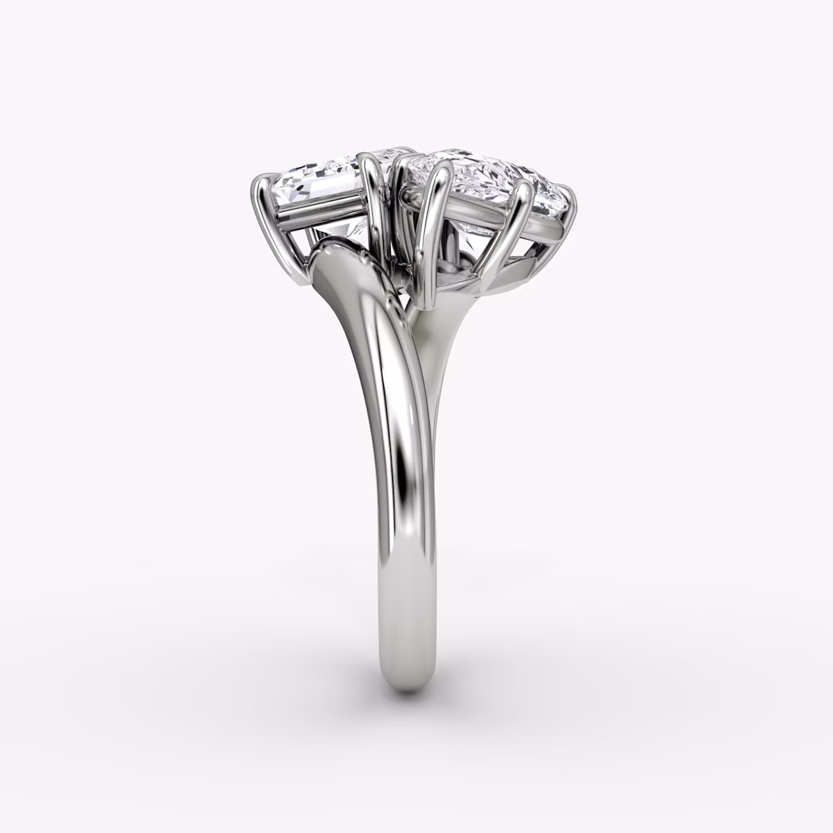 The Toi et Moi Bypass | Emerald and Pear | 18k | White Gold | bandAccent: Plain | diamondOrientation: vertical | caratWeight: other