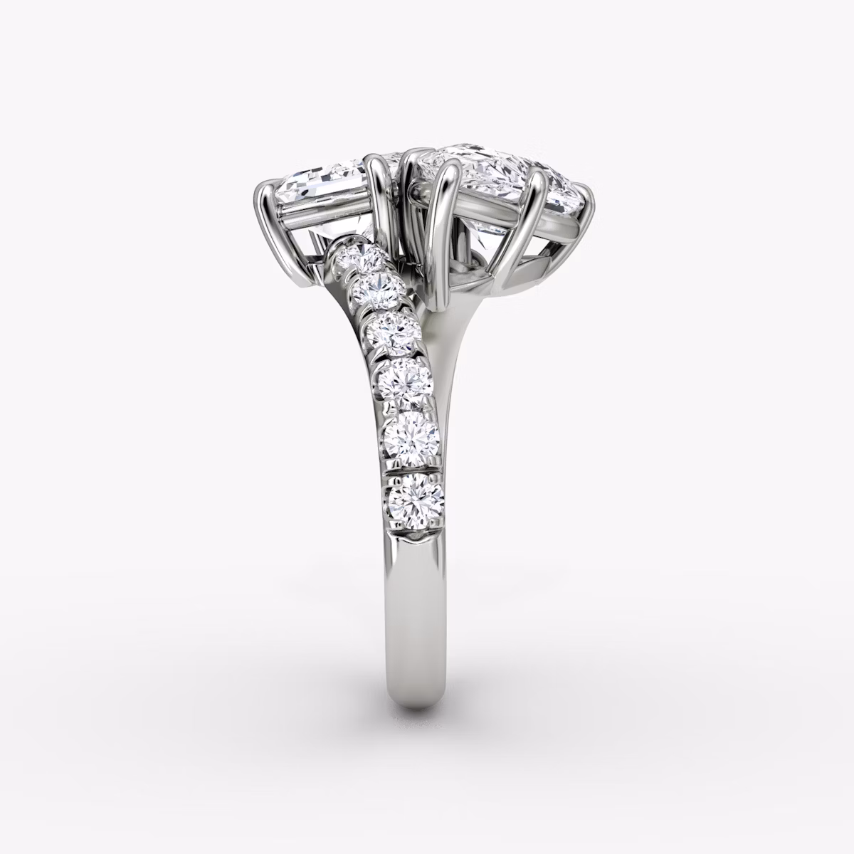 French for "you and me", the Toi et Moi Bypass celebrates your unique pairing. The two-stone design features a combination of overlapping Round Brilliant, Oval, Emerald, and Pear-shaped VRAI created diamonds highlighted on either end of a platinum or solid gold bypass ring.