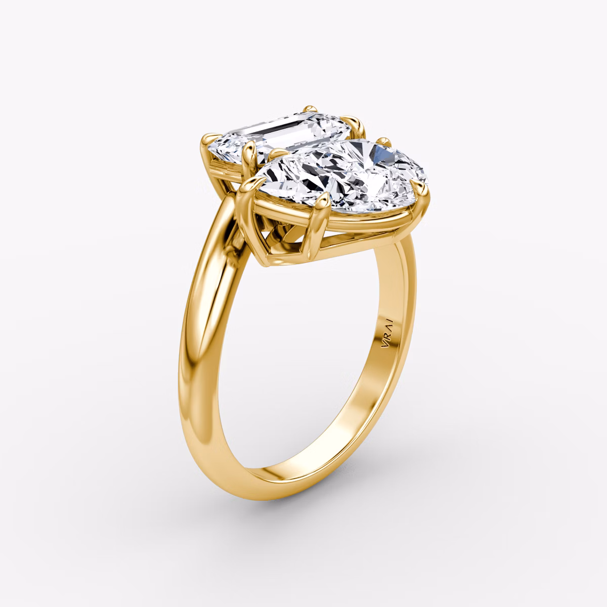 French for "you and me", the Toi et Moi Bypass celebrates your unique pairing. The two-stone design features a combination of overlapping Round Brilliant, Oval, Emerald, and Pear-shaped VRAI created diamonds highlighted on either end of a platinum or solid gold bypass ring.