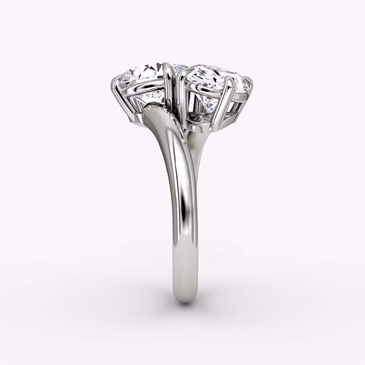 The Toi et Moi Bypass | Round Brilliant and Oval | 18k | White Gold | bandAccent: Plain | diamondOrientation: vertical | caratWeight: other